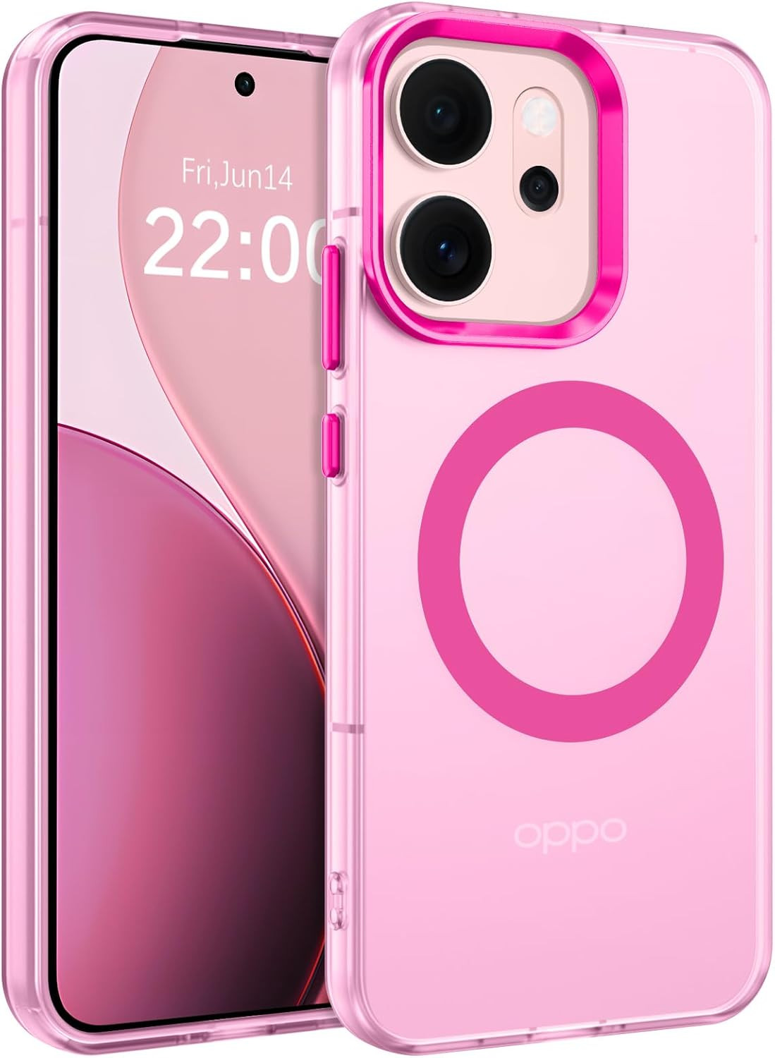 Cover Magnetico per OPPO Reno14 FS/14 F 5G, Compatibile Con Magsafe, Custodia Con Labbra Rialzate Paraurti Antiurta Colori Vivaci Glassata Traslucida Opoca Anticaduta Protettivo Case Rosa Caldo. Caratteristiche prodotto Assorbe gli urti, Calamita, Compatibile con MagSafe, Sottile.